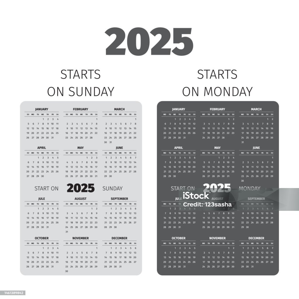 2025 Pocket Calendar Start On Sunday And Monday Stock Illustration, Spanning the months of january 2025 through december 2026, the monthly views have unlined grid space for daily planning, plus bonus space for notes.
